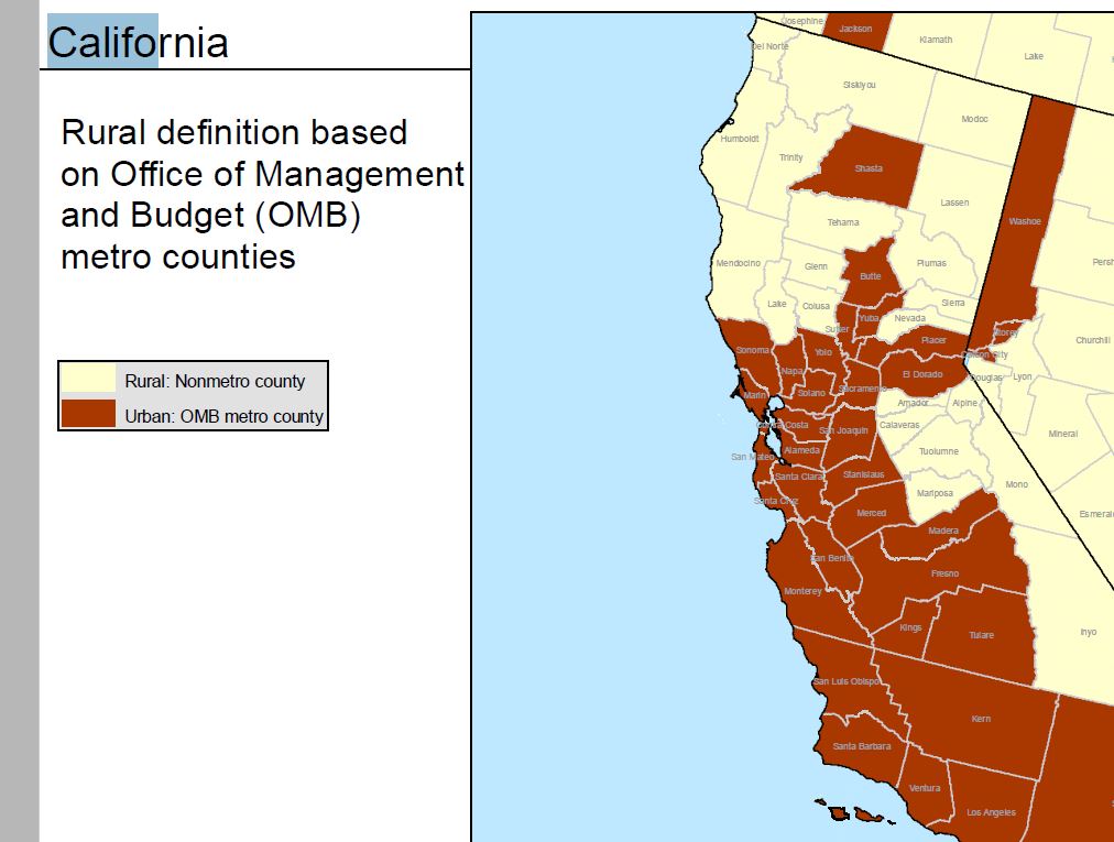 of Agriculture Economic Research Service. http://www.ers.usda.gov/datafiles/Rural_Definitions/StateLevel_Maps/CA.pdf
